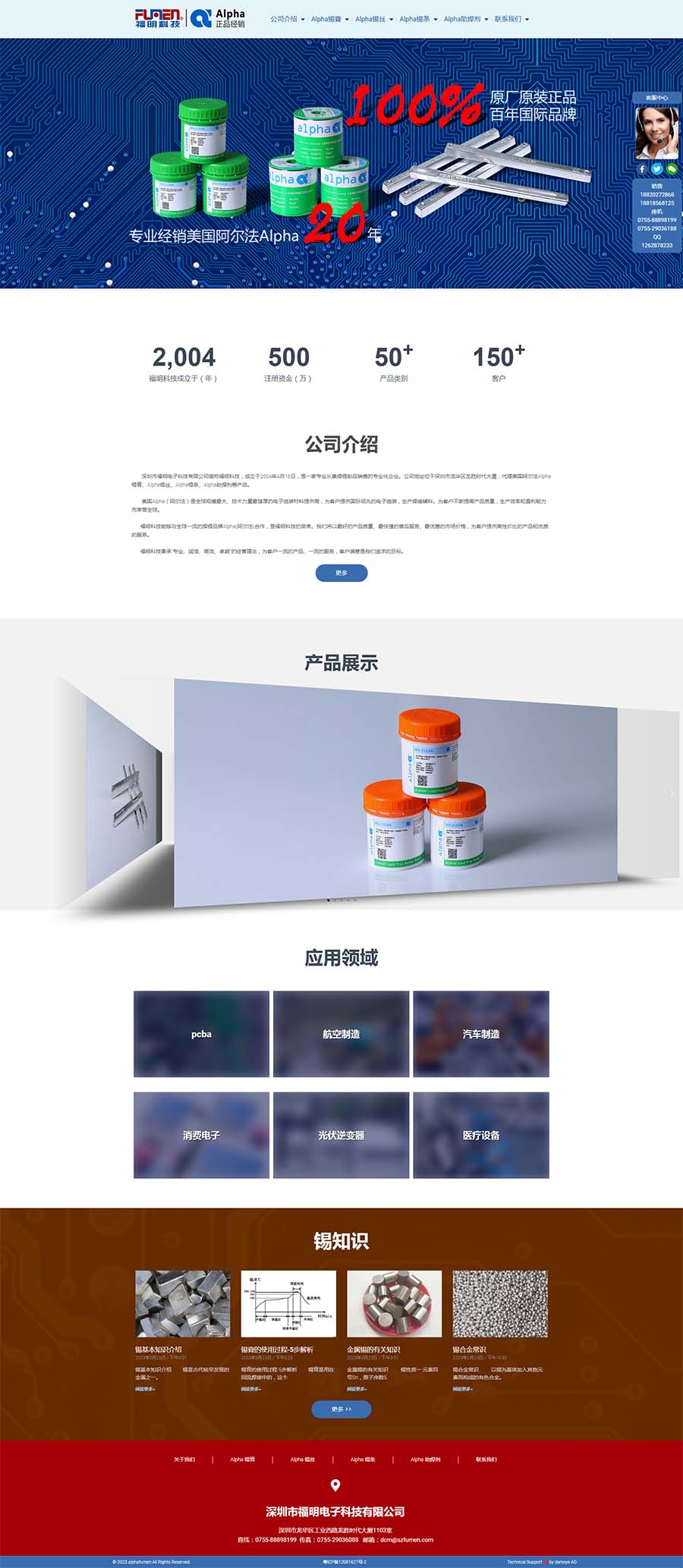 深圳市福明電子科技有限公司簡(jiǎn)稱福明科技,成立于2004年4月16日,是一家專業(yè)從事焊錫制品銷售的專業(yè)化企業(yè)。公司地址位于深圳市龍華區(qū)龍勝時(shí)代大廈,代理美國阿爾法Alpha錫膏、Alpha錫絲、Alpha錫條、Alpha助焊劑等產(chǎn)品。
